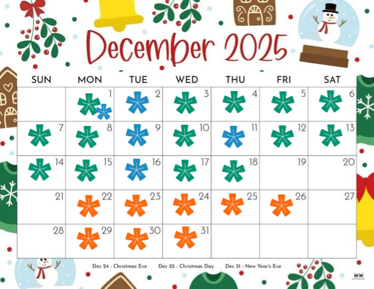blue * - practice orange * - school/cmpaa events green * - games
